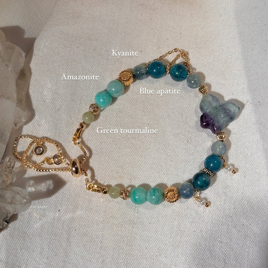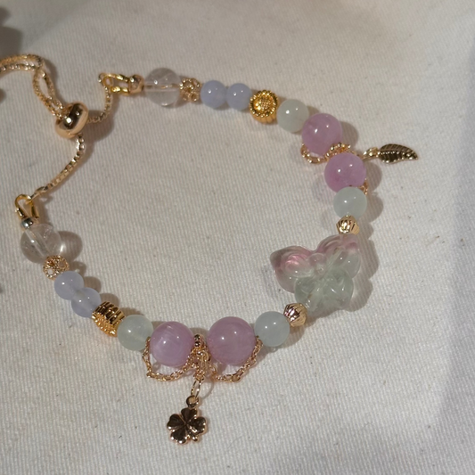 It symbolises transformation, grace, and the delicate balance of nature. Each bracelet features intricate fluorite butterfly carving. Each fluorite butterfly centerpiece is unique as they are carefully carved out from natural fluorites. No two pieces are the same! They truly capture the essence of these enchanting creatures.